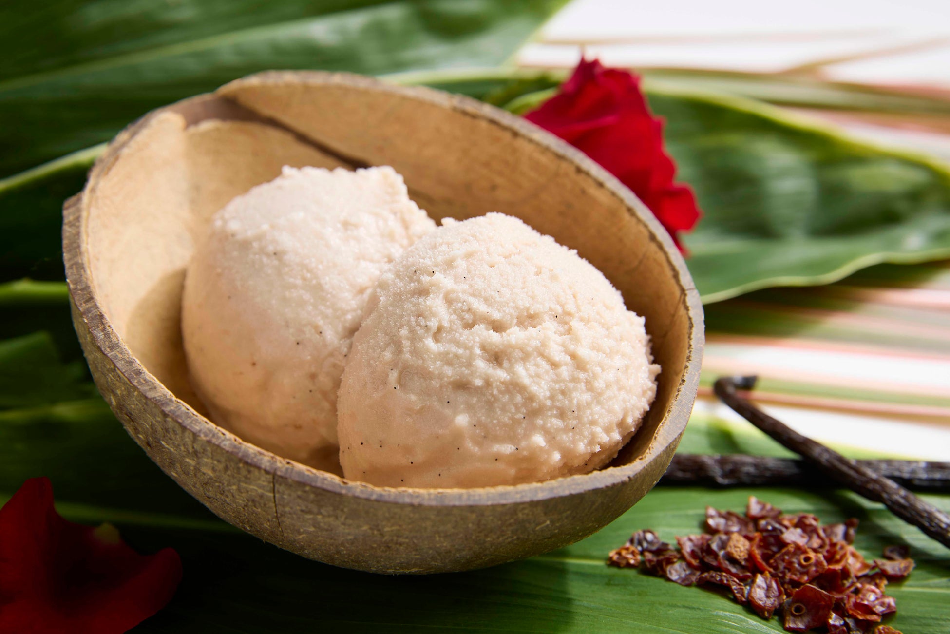 「Vanilla Coco Rose」は、オーガニックのココナッツミルクに、薔薇の花びらをブレンド。そこにローズヒップ、バニラビーンズなどを加えました。口の中にローズの香りがふわっと広がり、まろやかで濃厚なバニラの味わいと重なることで優雅な雰囲気を楽しめるアイスクリームに仕上げました。